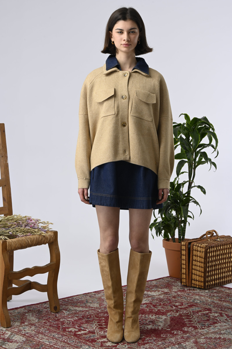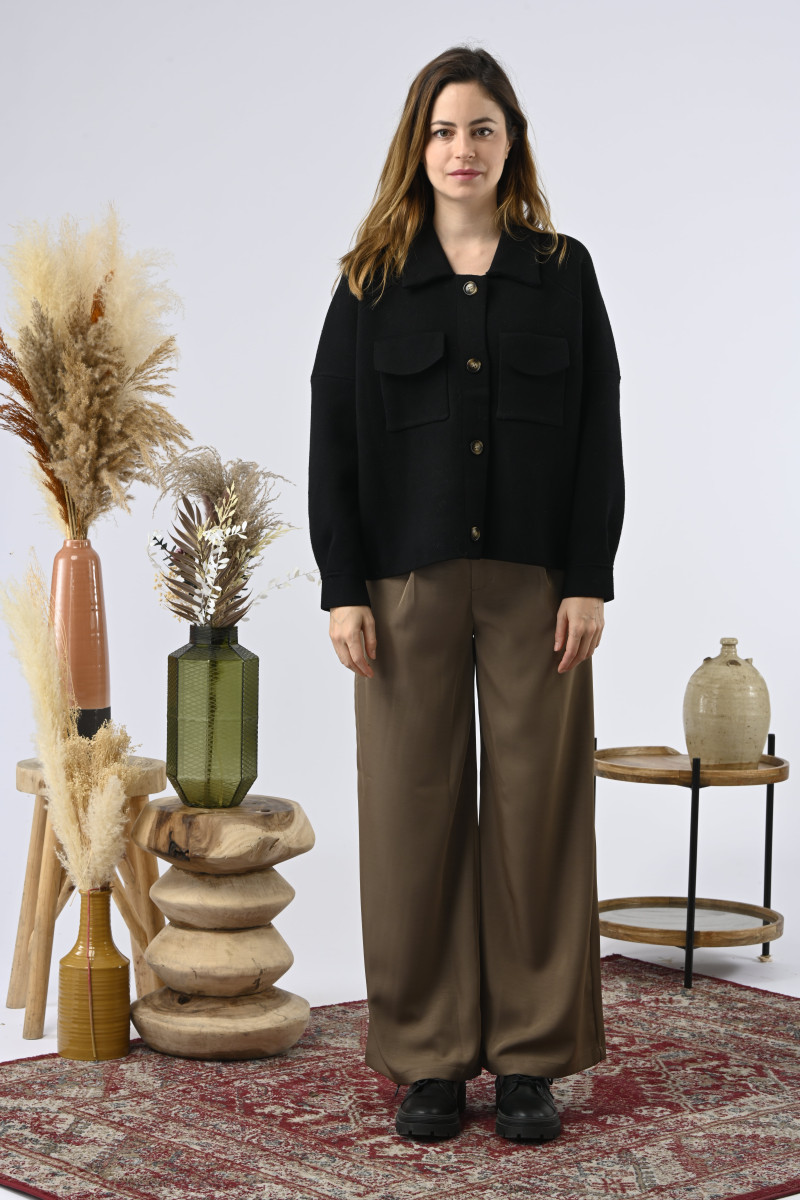 Découvrez la veste Camelia, une pièce maîtresse de la collection de Maison Fidji. Cette veste revisite l’esprit workwear avec une touche féminine et moderne. Sa coupe courte et structurée met en valeur la silhouette, tandis que ses grandes poches à rabat apportent du caractère et de la fonctionnalité. Pratique et tendance, elle se porte aussi bien fermée comme un blouson qu’ouverte sur une chemise ou un pull fin.